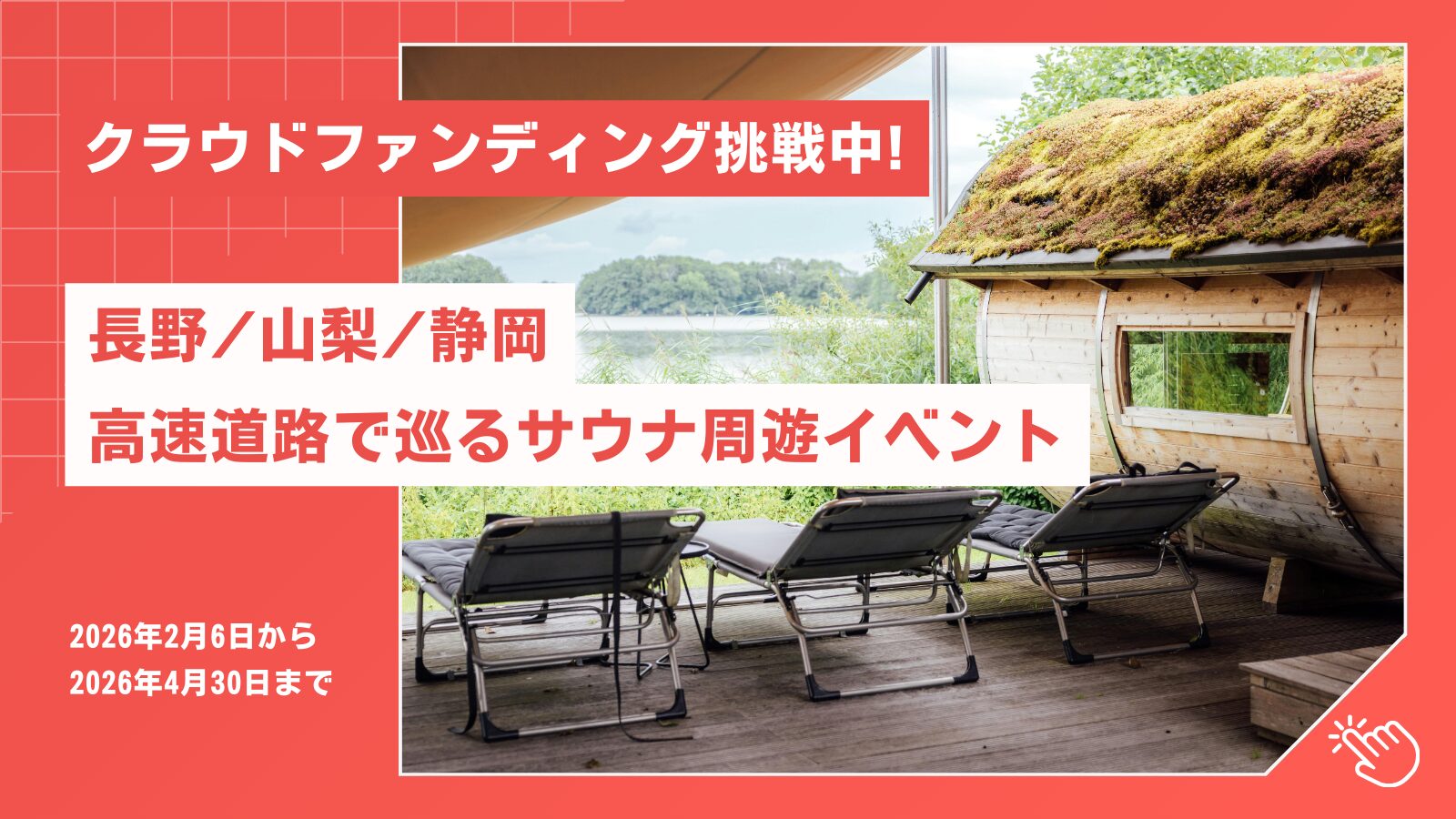 | 連携施設 | 静岡・山梨・長野 指定アウトドアサウナ施設12施設 (施設の詳細はこちら) |